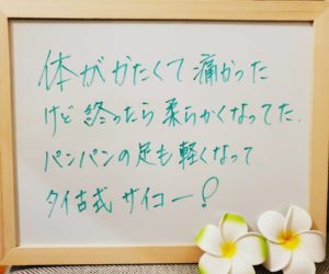 タイ古式マッサージの施術の感想をいただきました✨
