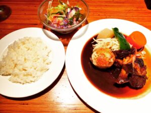 母は牛ヒレ定食で、私は、ほほ肉の赤ワイン煮込み定食?にしました☺