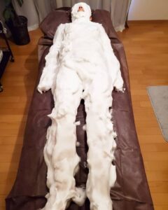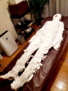 ミイラみたいで笑えますが、泡を作るのが本当に大変で腕が痛くなりました😅