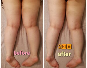 2回目の施術になりますが、ふくらはぎの浮腫みが取れ、太ももの太さもサイズダウンしています😊
