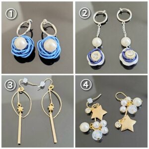 以前言っていた従姉妹のお嫁さんが作ったピアス、マスクチャーム、イヤリングの撮影をしました💕