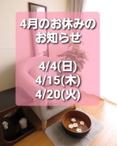 4月のお休みをお知らせさせていただきます💡