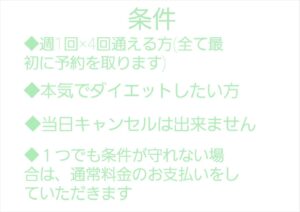 こちらは、体重が1.5キロ以上痩せていただくという条件と金額が少し違いますが、それ以外は同条件となっています✨
