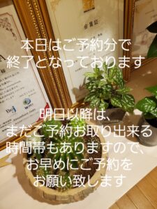 また明日以降は、時間帯によりご予約をお取り出来るところもありますので、お早めにご予約をお願い致します✨