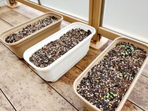 手前から、バジル、カモミール、ミントの順番ですが、どうやったら芽が出るかわかりませんが、とりあえず1つでも育っててくれて嬉しいです❤