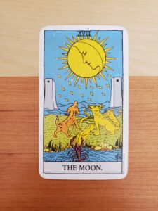 【月の正位置】 心配ごとを抱えている、不安から起こした行動が後にトラブルを生む、今は深刻に取り合わず距離を置いて