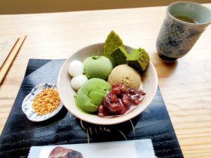 アイスは、濃茶抹茶、抹茶、紅茶にしたような??