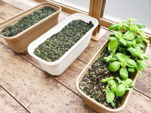 バジルと奥のミントは芽が出てますが、カモミールもひとつ芽が出てきました✨