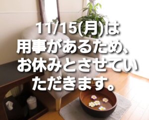 11/15(月)は用事があるため、急遽お休みとさせていただきます🙇