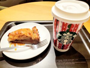 昨日仕事の合間に行ったスタバですが、アップルパイにキャラメルソースをかけて食べると美味しいですよと店員さんが教えて下さってかけてくれました☺