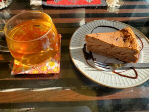 ハーブティーとみかんが入ったチョコチーズケーキです😊✨
