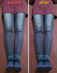 寝た状態でも、左側の脚がO脚になっていたのが改善し、ふくらはぎの隙間が狭くなっていますね☺