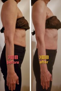 3回目になってくると、脇肉や背中のお肉がかなり柔らかくなってきてスッキリしてきます😊