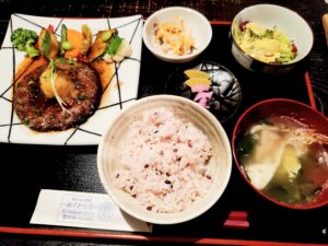 ハンバーグがレアな感じであっさりしてて好きです😊