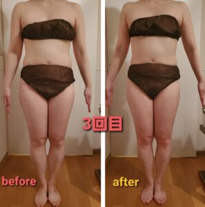 この時は寒かったちめ、太ももが冷えていて浮腫みがありましたが、キャビゼロをあてて浮腫みも取れ、太もももスッキリしました❤