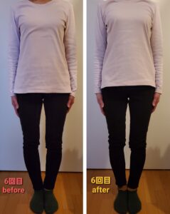 脚の歪みや骨盤の歪みがかなり改善され、脚の隙間が狭くなりました😊✨