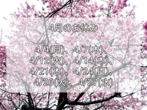 【4月のお休み】