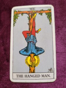 【吊るし人の正位置】 覚悟を決めている、疲れすぎて冷静に考えることができない、現実を拒絶し思考停止してしまっている
