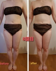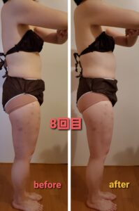 生理中もあり、浮腫みで前回よりも体重の増加やサイズダウンはあまりしなかったのですが、浮腫みが取れてふくらはぎはスッキリしています😊