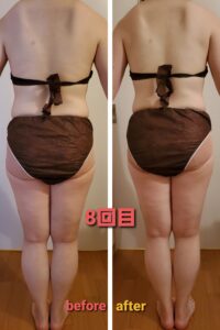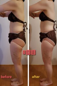 ◆右太ももつけね59センチ→58.5センチ(-0.5センチ) ◆ふくらはぎ37センチ→35.7センチ(-1.3センチ)
