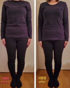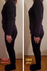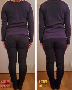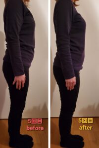 少し歪みや反り腰が改善したことにより、お尻が小さくなり、ぽっこりお腹も引っ込み、姿勢も良くなりバストアップしています❤