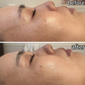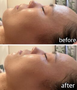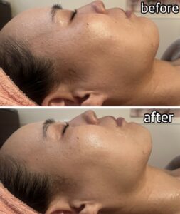 こめかみ付近やおでこの毛穴がかなり引き締まり、ほうれい線も薄くなり、顎まわりもスッキリしました😊