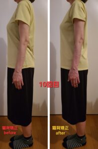巻き肩が少し改善しているため、手が真っ直ぐ下におりています☺️