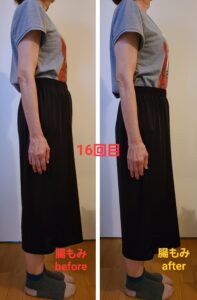 腕が真っ直ぐ下に下りているので、巻き肩も改善しています☺️