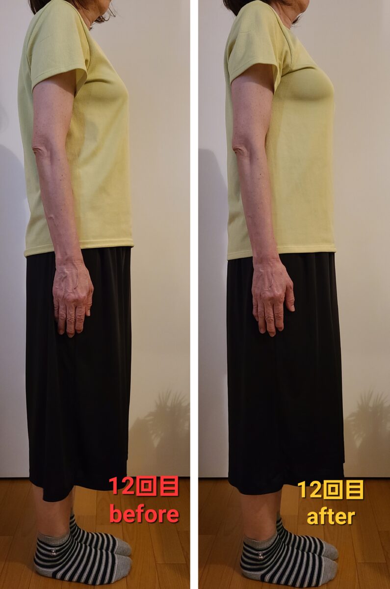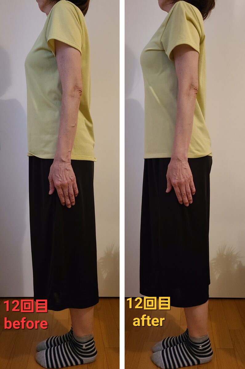 猫背だった姿勢や巻き肩が改善し、バストアップして、腕も真っ直ぐ下におりて、姿勢もキレイになりました💕