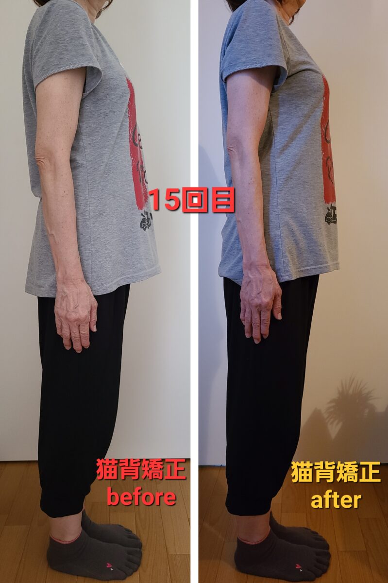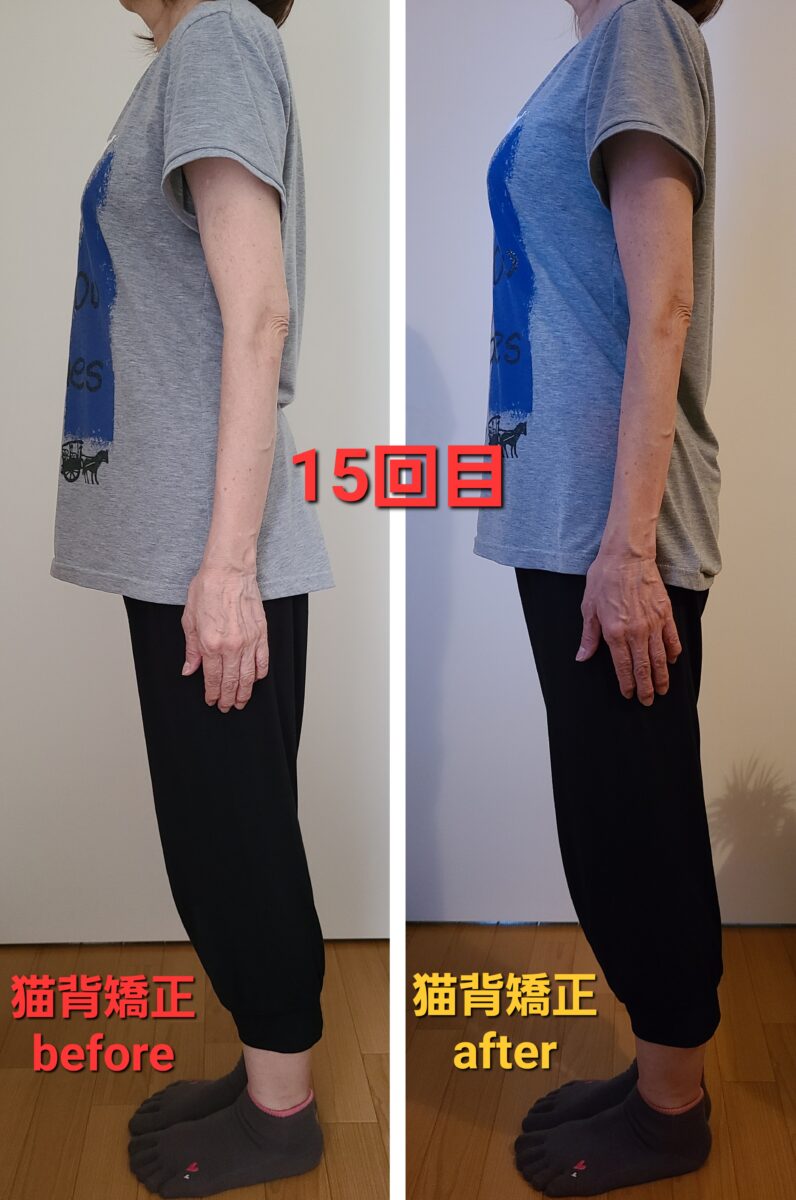 猫背の姿勢が改善し、横から背中が見える範囲が狭くなっています😌