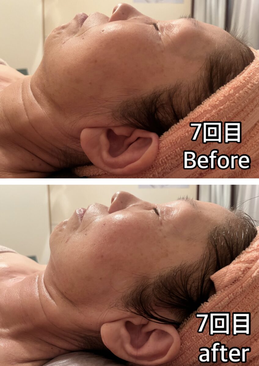 鼻の毛穴の黒ずみが少し改善し、ほうれい線も薄くなり、顔の歪みも改善しています😄✨️