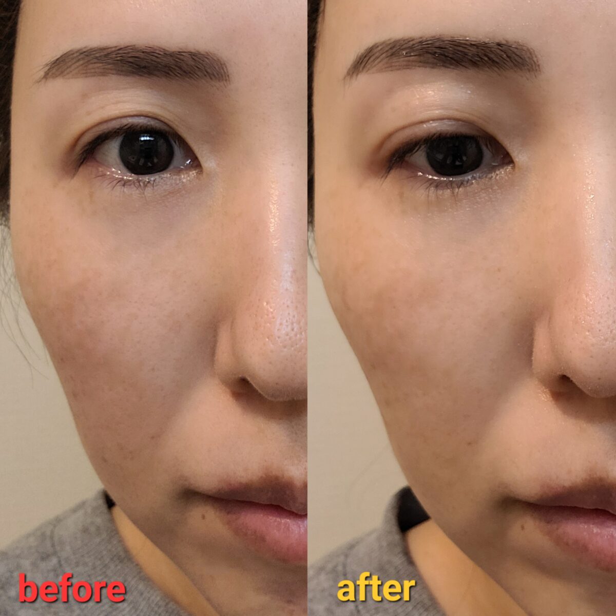 また、しっかり保湿出来るため 鼻の毛穴の開きも小さくなり、 頬の毛穴は全くわからなくなりました😊