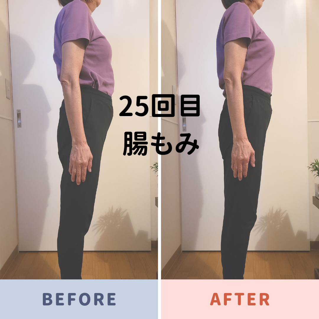 【腸もみ25回目 before→after】 《お客様のお悩み箇所》 ・ぽっこりお腹 ・腰痛 ・猫背 ぽっこりお腹は、 胃が下に下がっている ことが原因となっています 胃が下に下がると 腸も押されてしまうた…